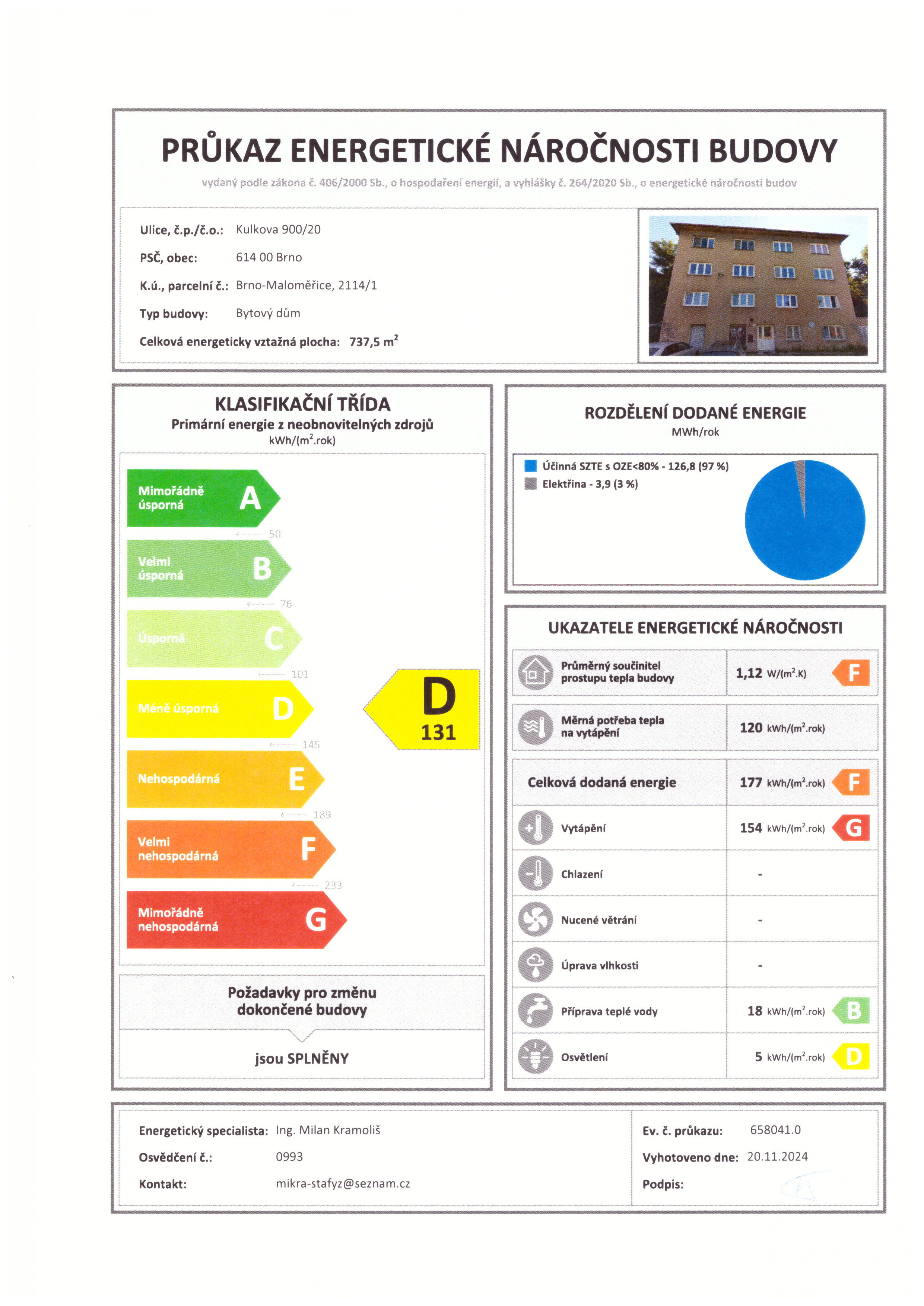 | Ukazatel ENB | 131 kWh/m2 za rok |
